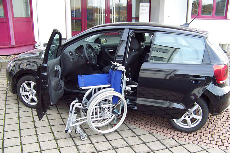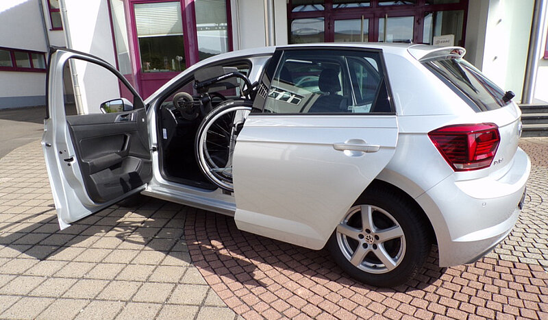 Nach der Umrüstung mit der EDAG Rollstuhl-Ladehilfe ist der VW Polo für 3 Personen und Ihren Rollstuhl zugelassen.