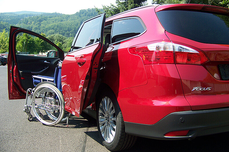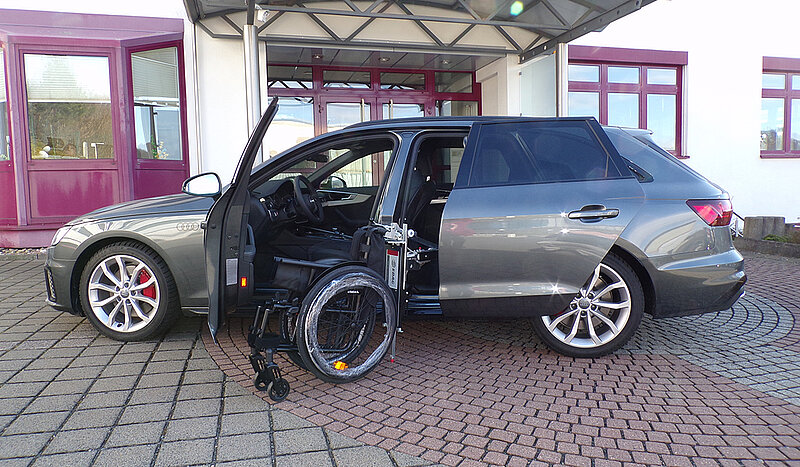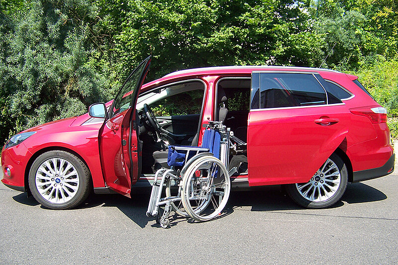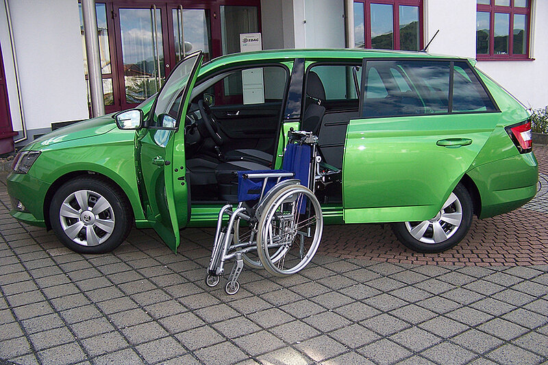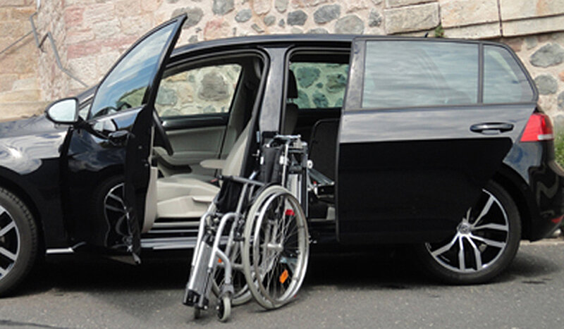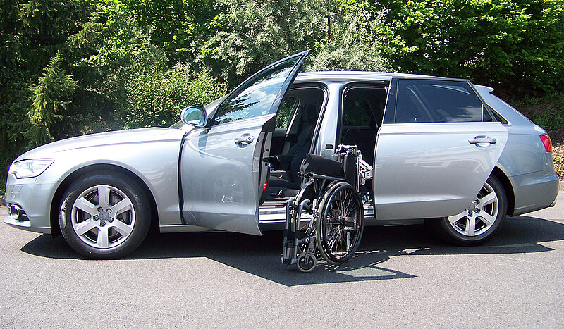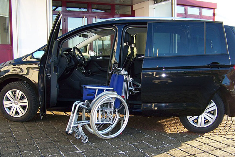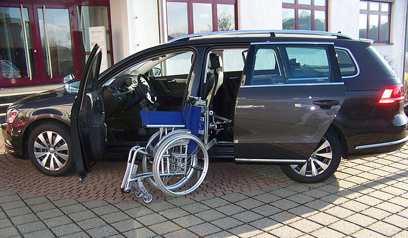 Dieses Fahrzeug eignet sich auch für größere Rollstühle.