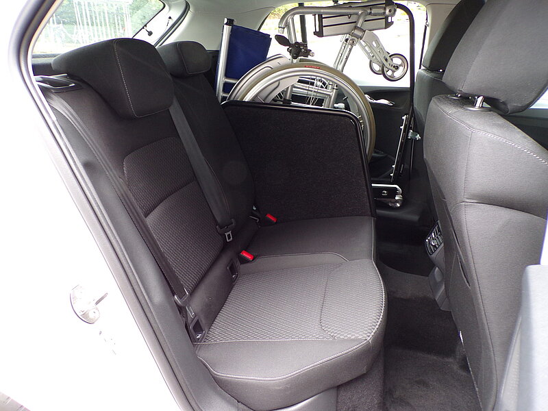 Der OPEL Astra L Sportstourer ist nach der Umrüstung für 3 Personen + Rollstuhl zugelassen und bietet ausreichend Platz für Gepäck, Handbike oder Ihre Einkäufe.
