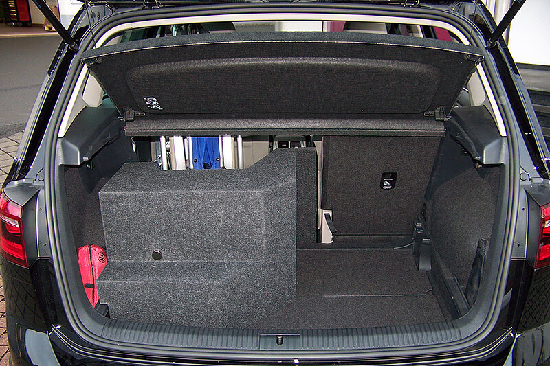 Nach dem Umbau behält das Fahrzeug die Hälfte des Kofferraums zur Verfügung. Bei Nutzung dieses Autos von zwei Personen ergibt sich bei Umlegen der 2/3 Rückbank ein erheblich größerer Raum für Gepäck und andere Dinge.
