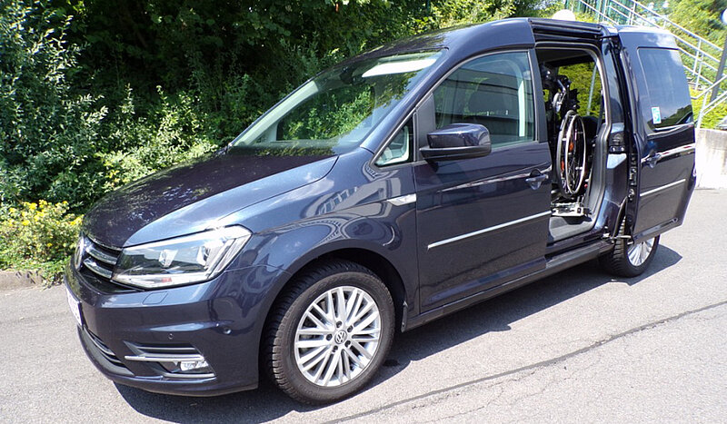 Der beliebte Klassiker VW Caddy mit serienmäßig mechanischem Türantrieb bietet nach der Umrüstung mit dem EDAG-System noch 3 Sitzplätze. Der Rollstuhl wird hier schnell und sicher im Fahrzeug verstaut, die mechanische Schiebetür muss von Hand betätigt werden. Ein elektrischer Türantrieb für die Schiebetür ist von EDAG nicht erhältlich, kann aber über einen Umrüster separat bezogen werden.